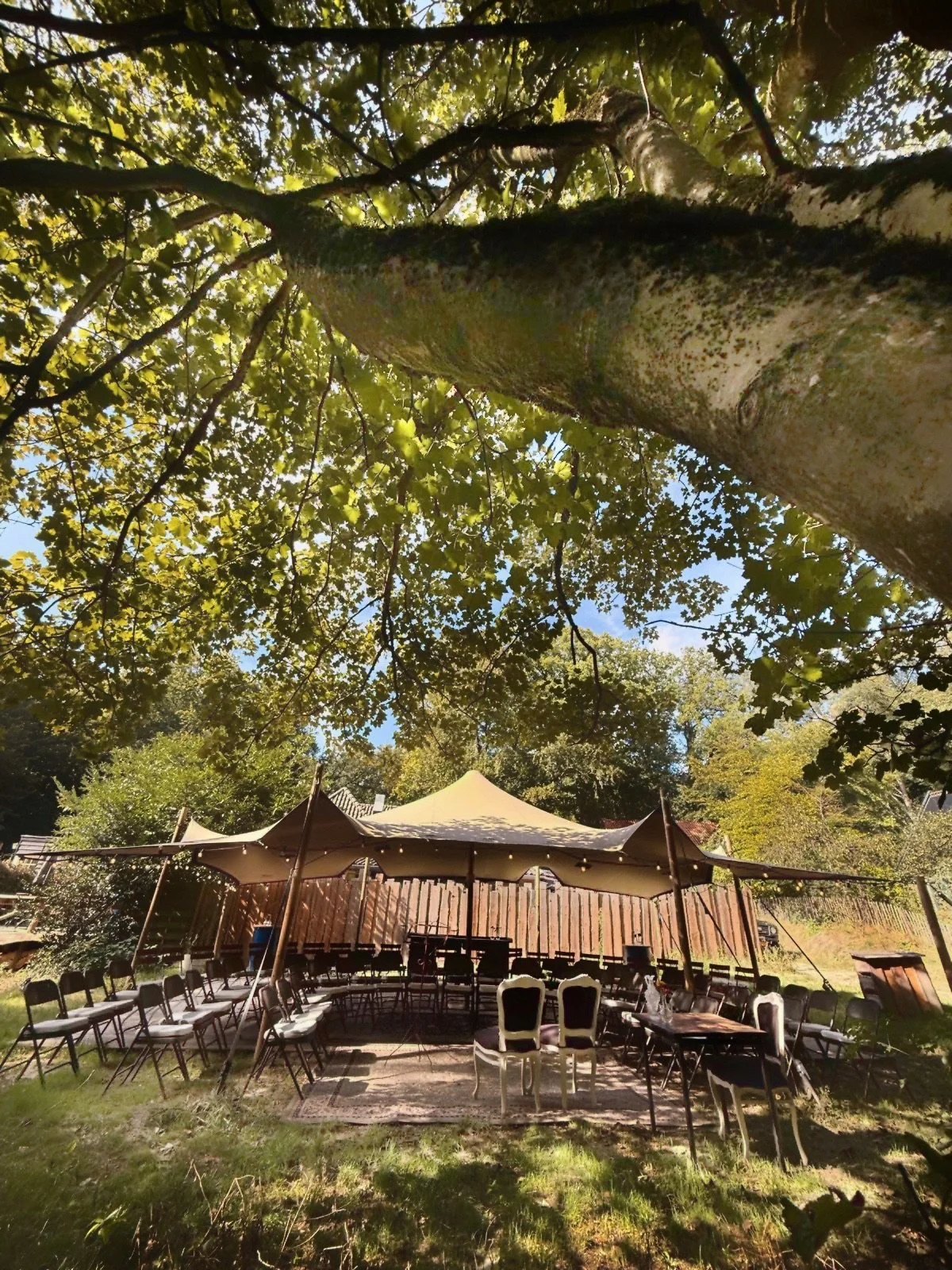 Onze Bostent is een verborgen parel, gelegen achter het restaurant direct aan de bosrand. Met uitzicht op de moestuin, het bos én de iconische Naald van Amerongen, is dit een unieke plek voor speciale gelegenheden. Hier wordt ieder samenzijn omarmd door de bijzondere sfeer en de kalmte van het bos.
